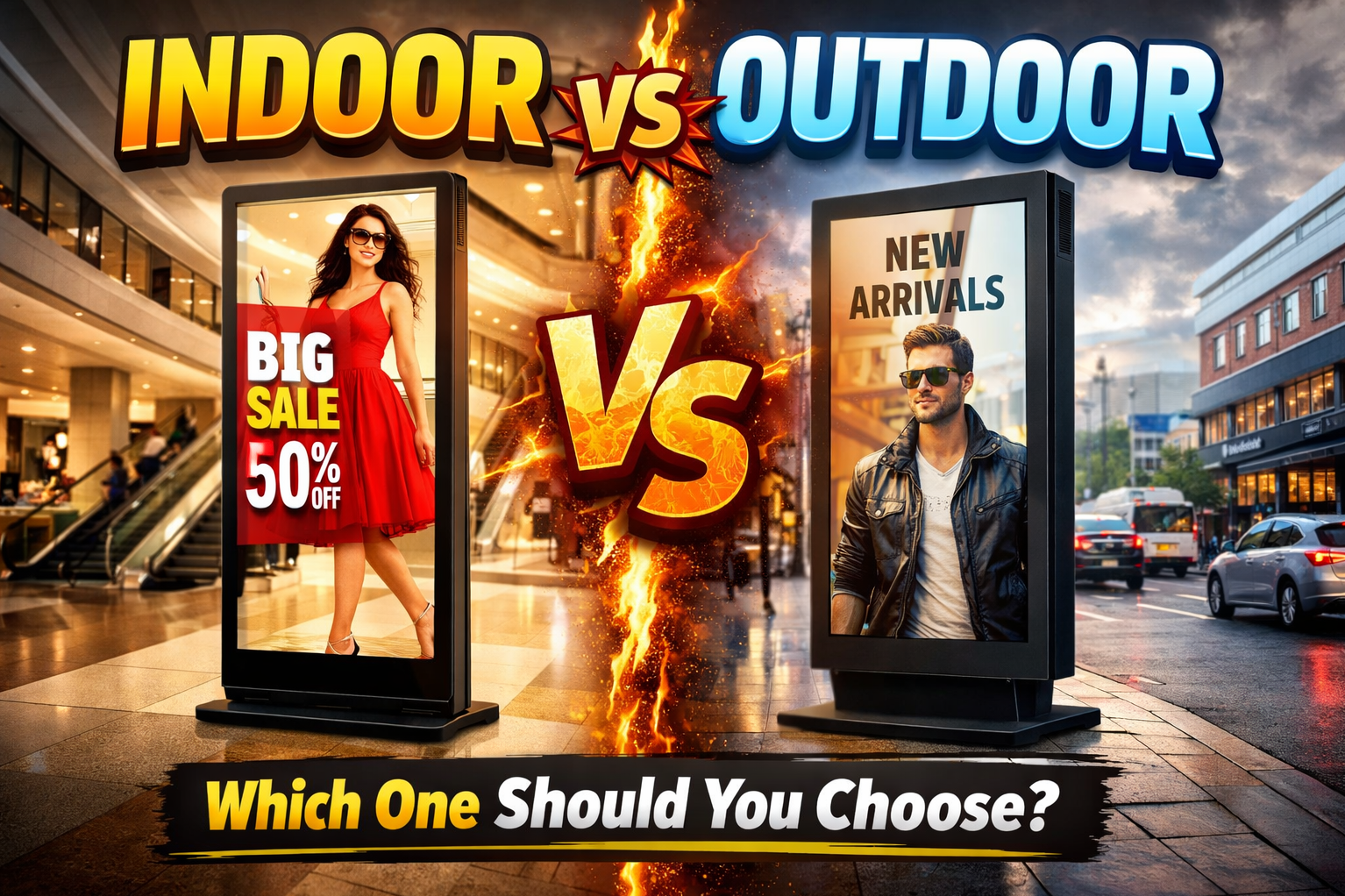 🔍 Indoor vs Outdoor Digital Standees – Key Differences