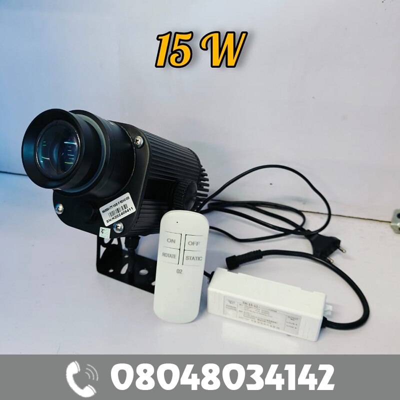 The 15W Logo Projector is built for precision and impact. It uses a dependable OSRAM LED with 1500-1600 lumens to provide sharp, bright projections with an 8-10 foot reach. It includes a remote control that allows you to switch easily between static and spinning modes for dynamic shows. This projector is ideal for business branding, events, or promotions since it makes your logo or message stand out and attract attention. It's the ideal tool for making your brand memorable because it's long-lasting, efficient, and simple to use.